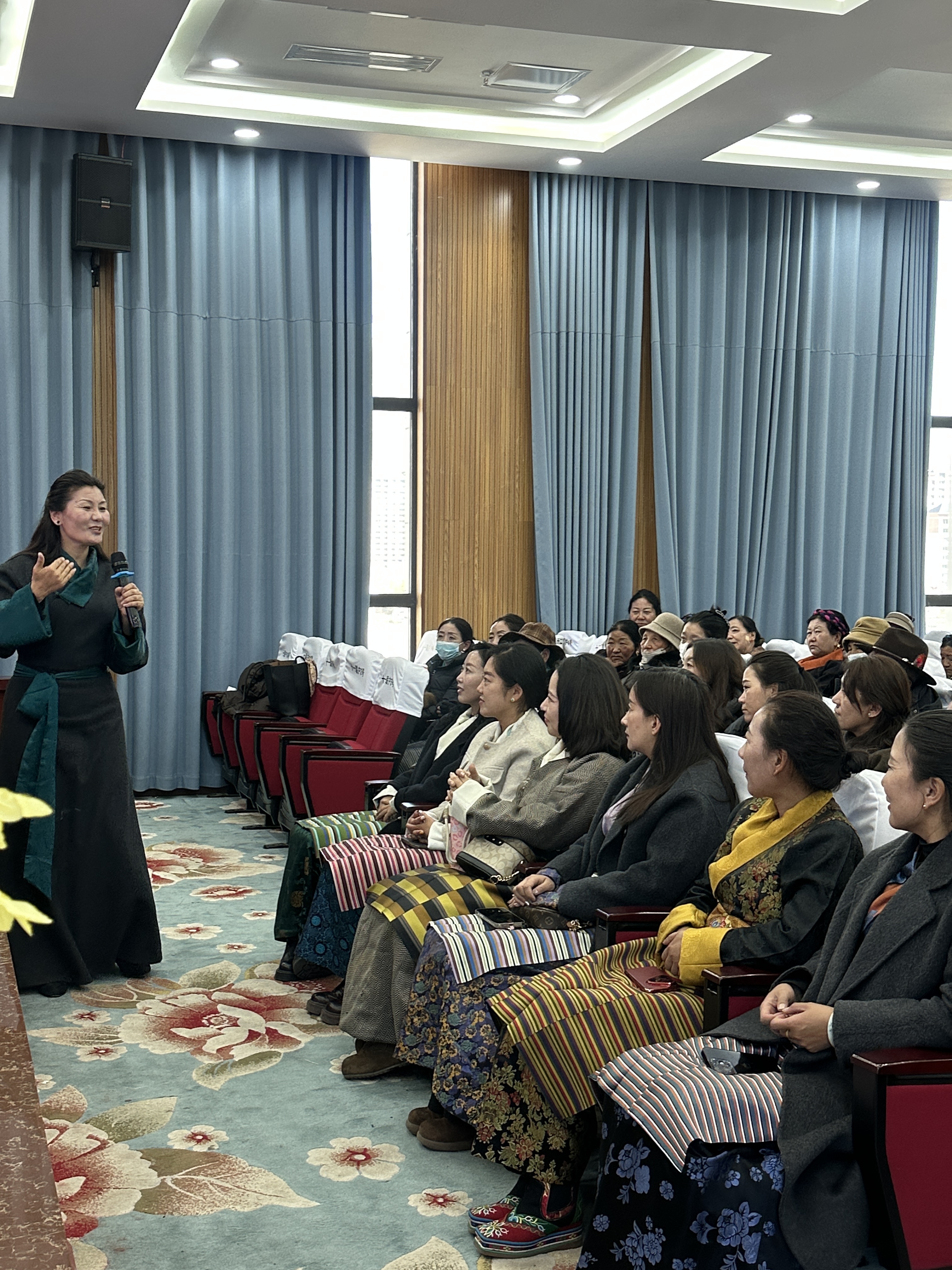 本次活动特邀心理健康领域专家、正高级教师卓玛老师授课。卓玛老师结合辅导对象工作特点,凭借丰富的宣讲经验,用通俗易懂的语言和鲜活事例带来精彩生动的心理健康辅导课,赢得现场妇女同胞阵阵喝彩与掌声。
